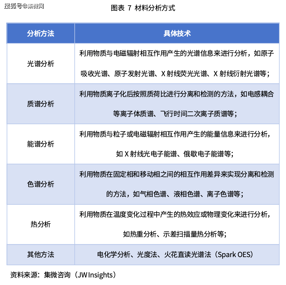 材料分析可分为三大方面:材料结构的测定、材料形貌观察和材料成分分析。材料成分分析主要是指通过各种检测手段对样品的成分进行定性定量的分析。常用的分析方法主要有化学分析法、质谱法、光谱法、X射线能量色散谱法(EDX)和电子能谱法。