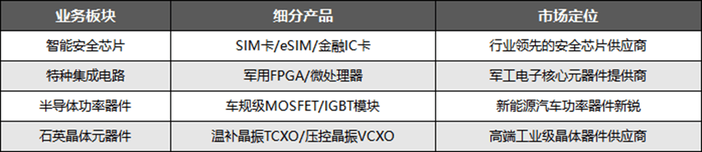 公司凭借该模式,在特种集成电路领域形成了谱系齐全的产品矩阵,同时在智能安全芯片、石英晶体器件等业务上保持灵活的资源配置,支撑多应用场景的拓展。
